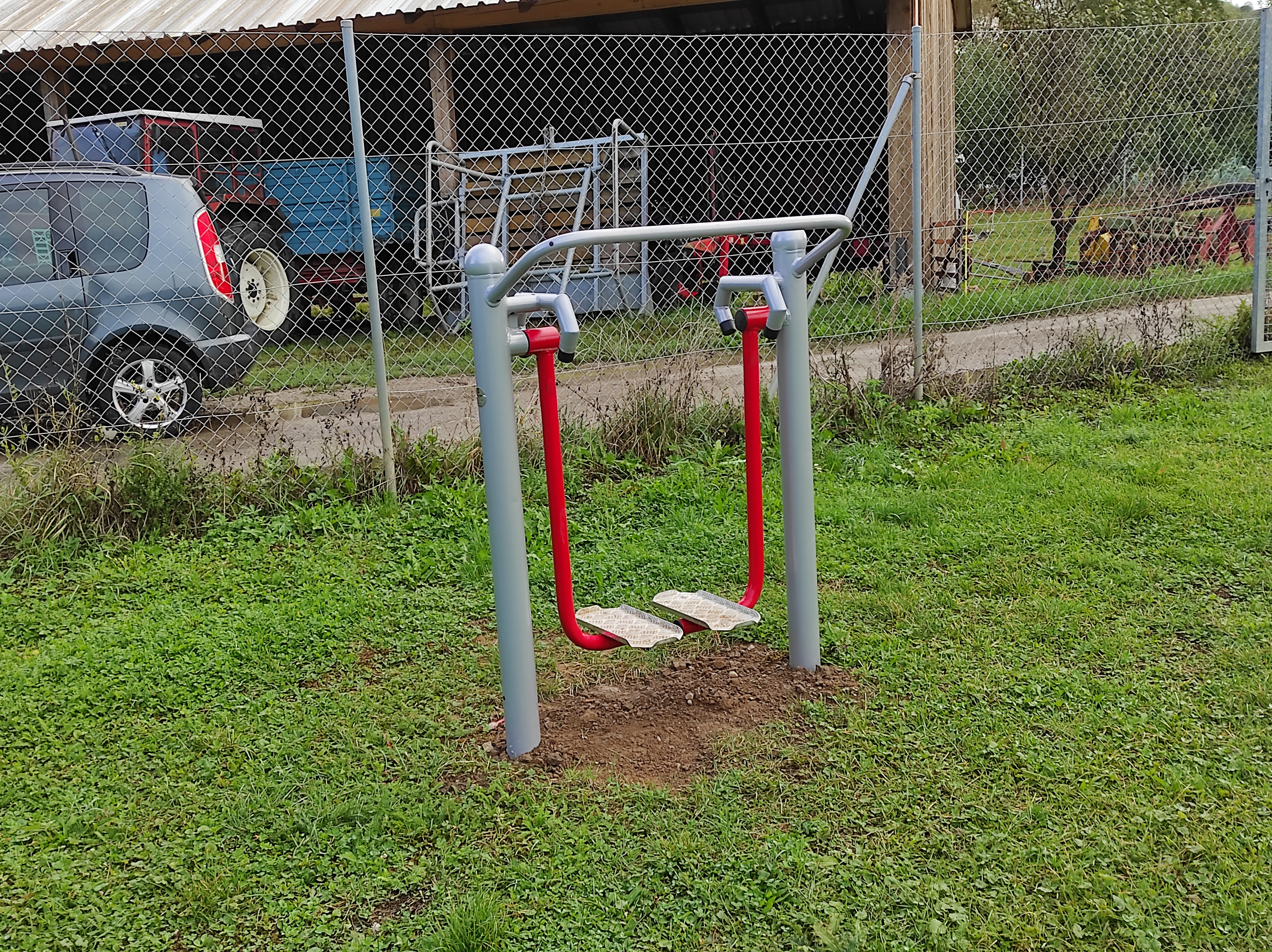 Auf dem Bolzplatz neben dem neuen Sportplatz befinden sich verschiedene Sportgeräte, die das ganzheitliche Training verschiedener Muskelgruppen ermöglichen.